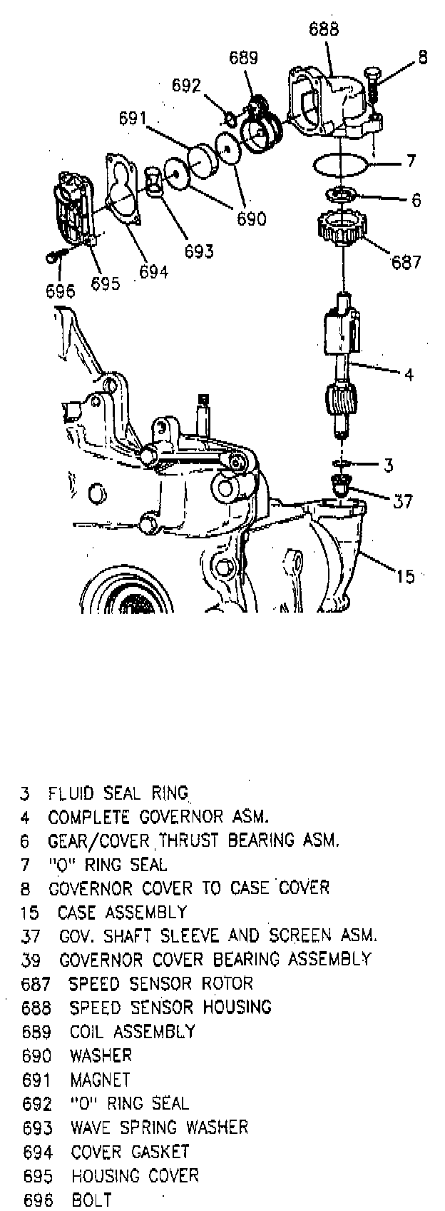 1. Governor shaft screen assembly and seal.