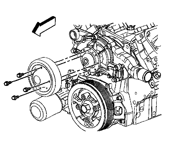 23. Remove the coolant pump pulley bolts.