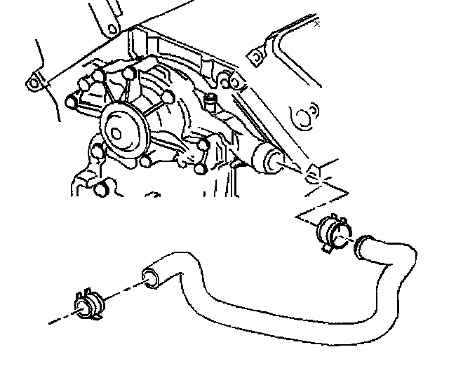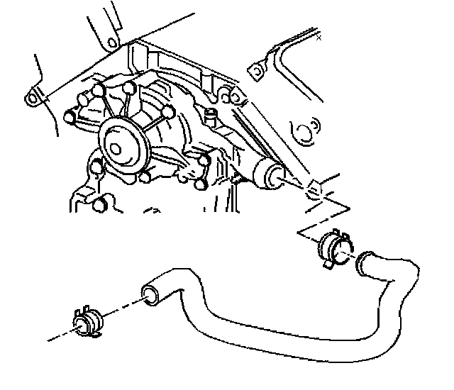 12. Install the radiator outlet hose to the front cover.