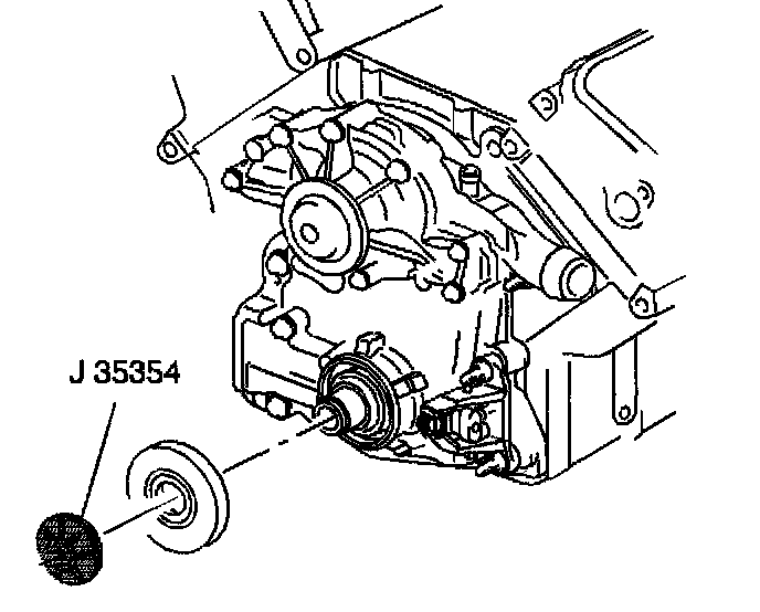 3. Install the crankshaft front oil seal to the front cover using the J35354 and a soft faced hammer.