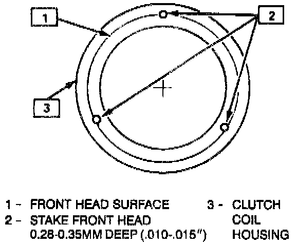 5. When coil is fully seated on the front head, use a 1/8" diameter drift punch and stake the front head at three (3) places 120° apart, to ensure clutch coil remaining in position.