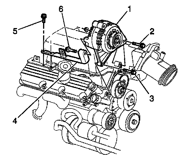 Tighten the generator rear brace bolts (5) to 25 N.m (18 lb ft).