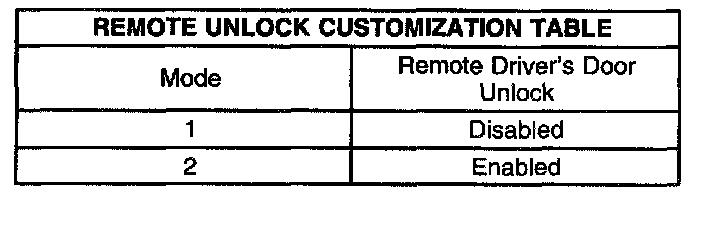 IMPORTANT: If the ignition switch is in the OFF position during this procedure, the remote unlock control customization will be terminated. The system will remain in the most recent mode.