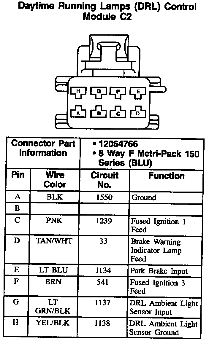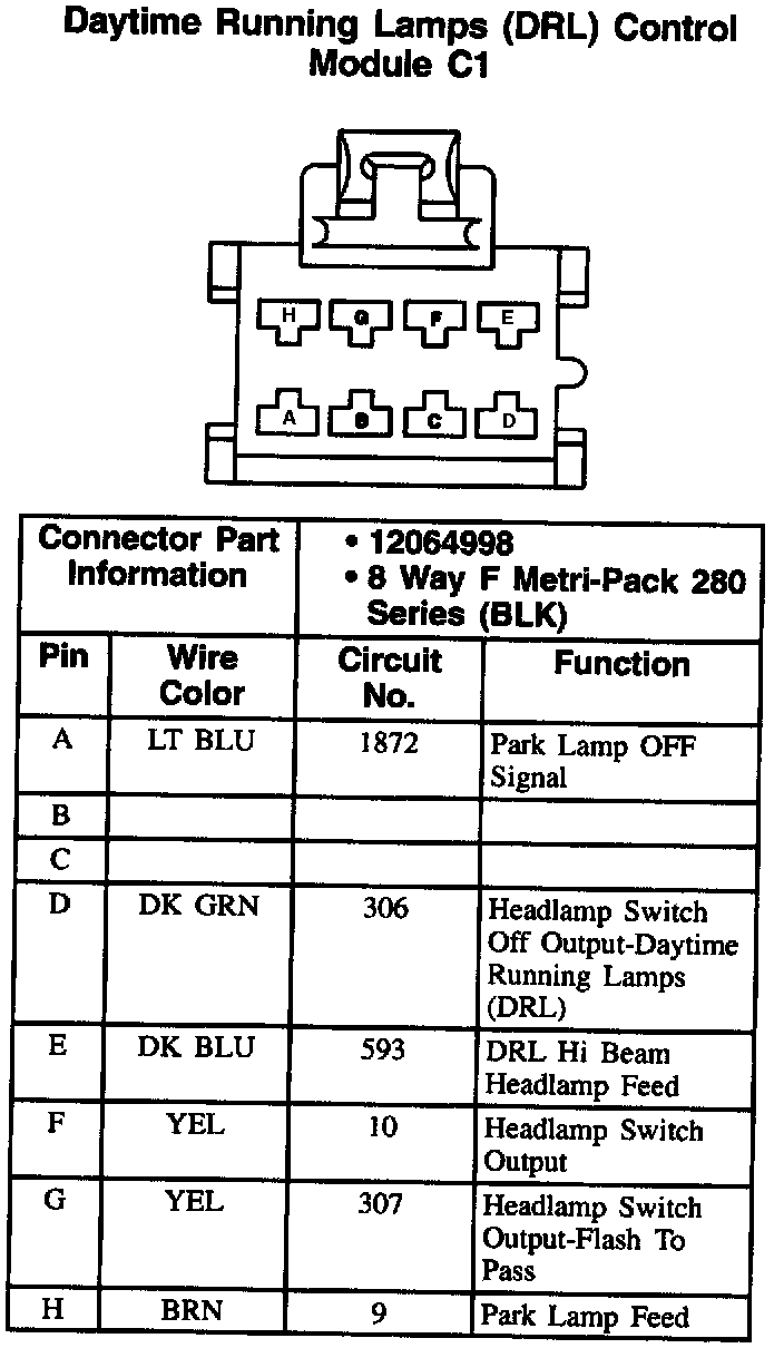 Daytime Running Lamps (DRL) Control Module: C1: