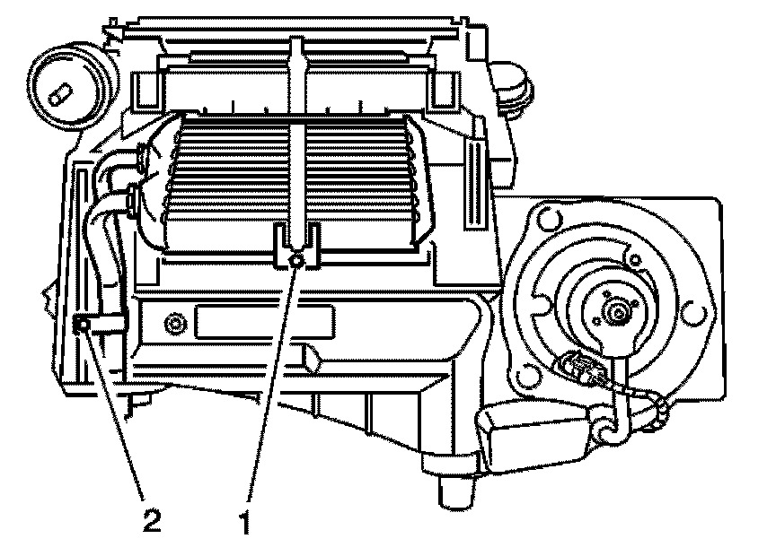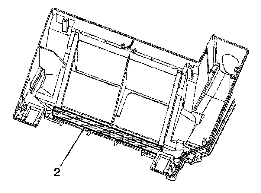 2. Install the heater core upper seal (2) from the HVAC lower case.
