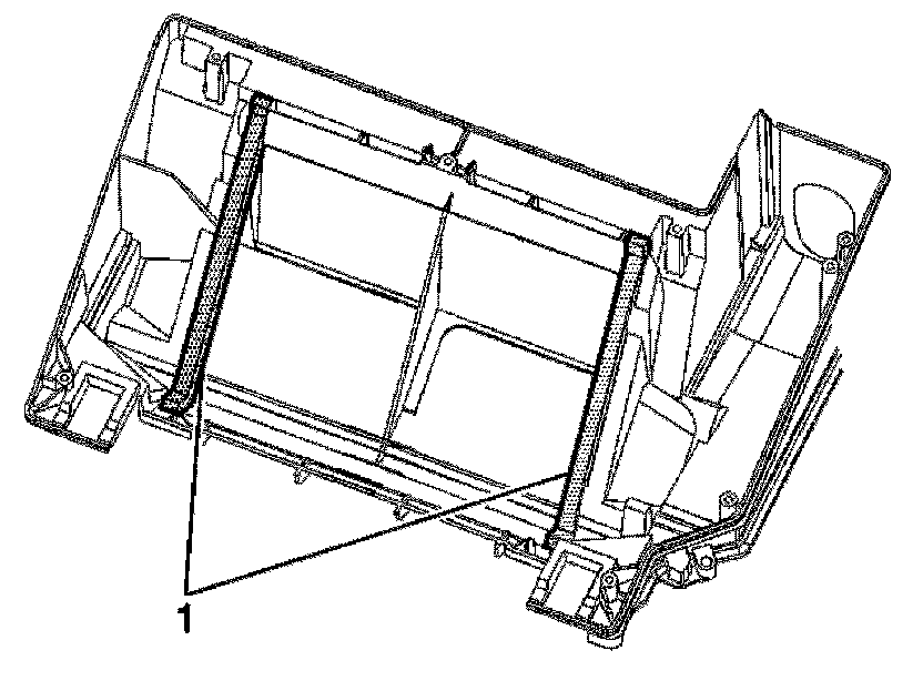 1. Install the heater core side seals (1) from the HVAC lower case.