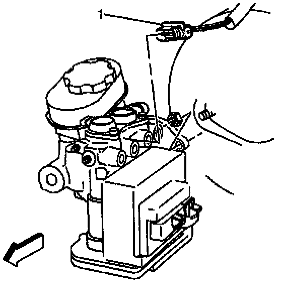 2. Disconnect the fluid level switch using needle nose pliers in order to compress the switch locking tabs (1) at the inboard side of the master cylinder.