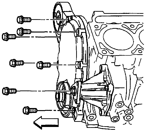 13. Remove the engine front cover. If necessary, carefully use a rubber mallet to loosen the cover.