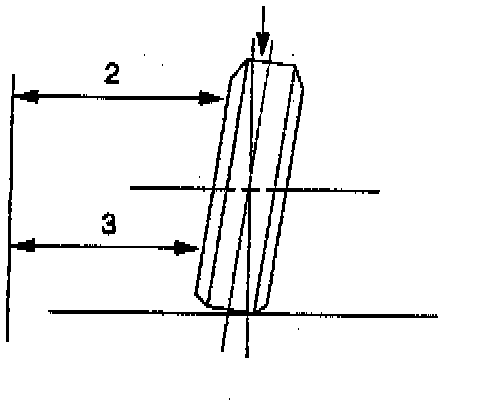 The camber is the tilting of the front wheels from the vertical (1) when viewed from the front of the vehicle. When the wheels tilt outward at the top, the camber is positive (+). When the wheels tilt inward at the top, the camber is negative (-). The amount of tilt is measured in degrees from the vertical. The camber setting will influence the directional control and the tire wear.