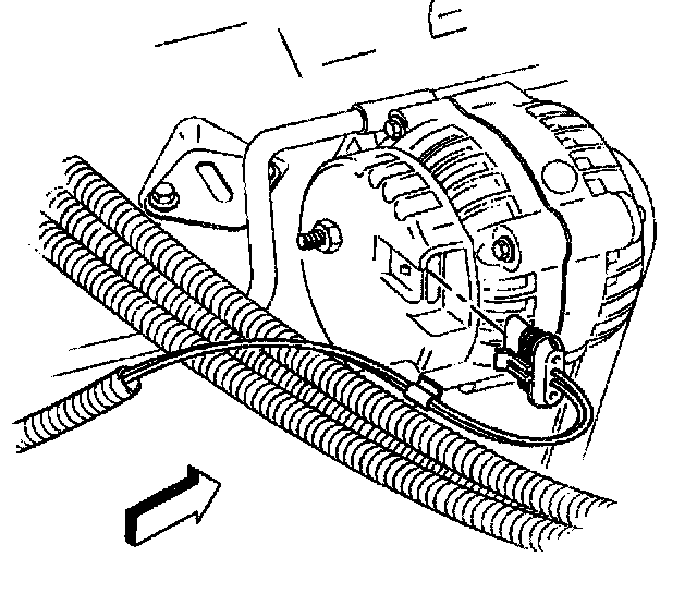 ^ Tighten the generator bolt (2) to 30 N.m (22 lb ft).