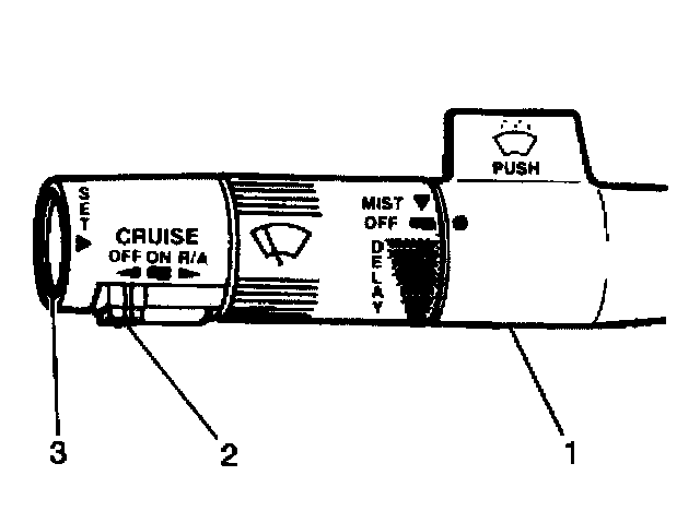 The cruise control SET/COAST button switch (3) is located in the end of the turn signal multifunction lever The cruise control SET/COAST button switch (3) has the following 2 positions: