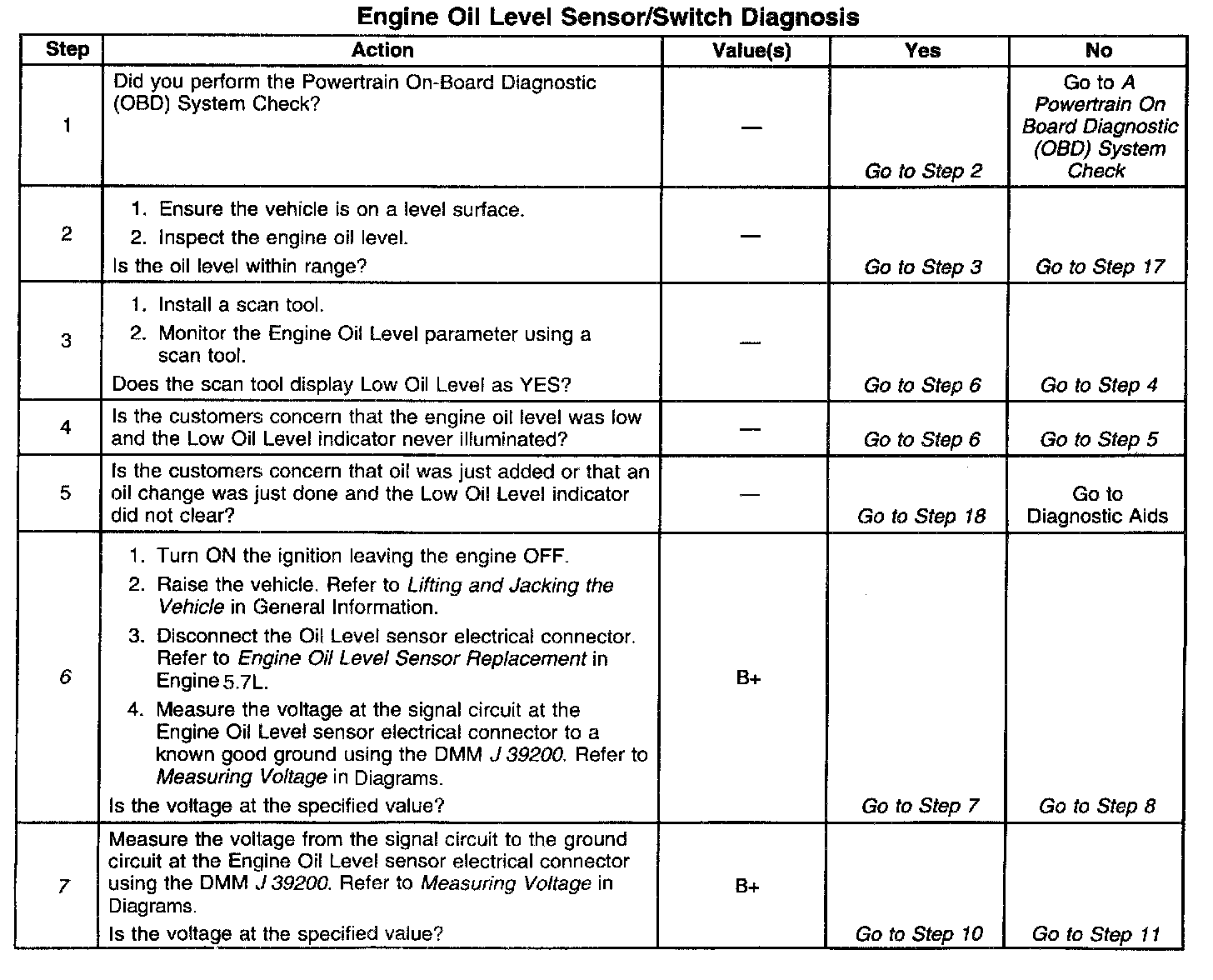 6. This step tests the Oil Level sensor signal circuit between the PCM and the sensor.
