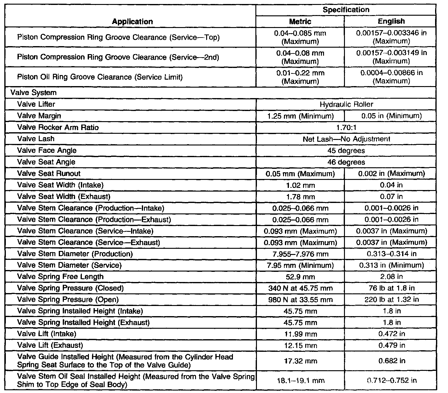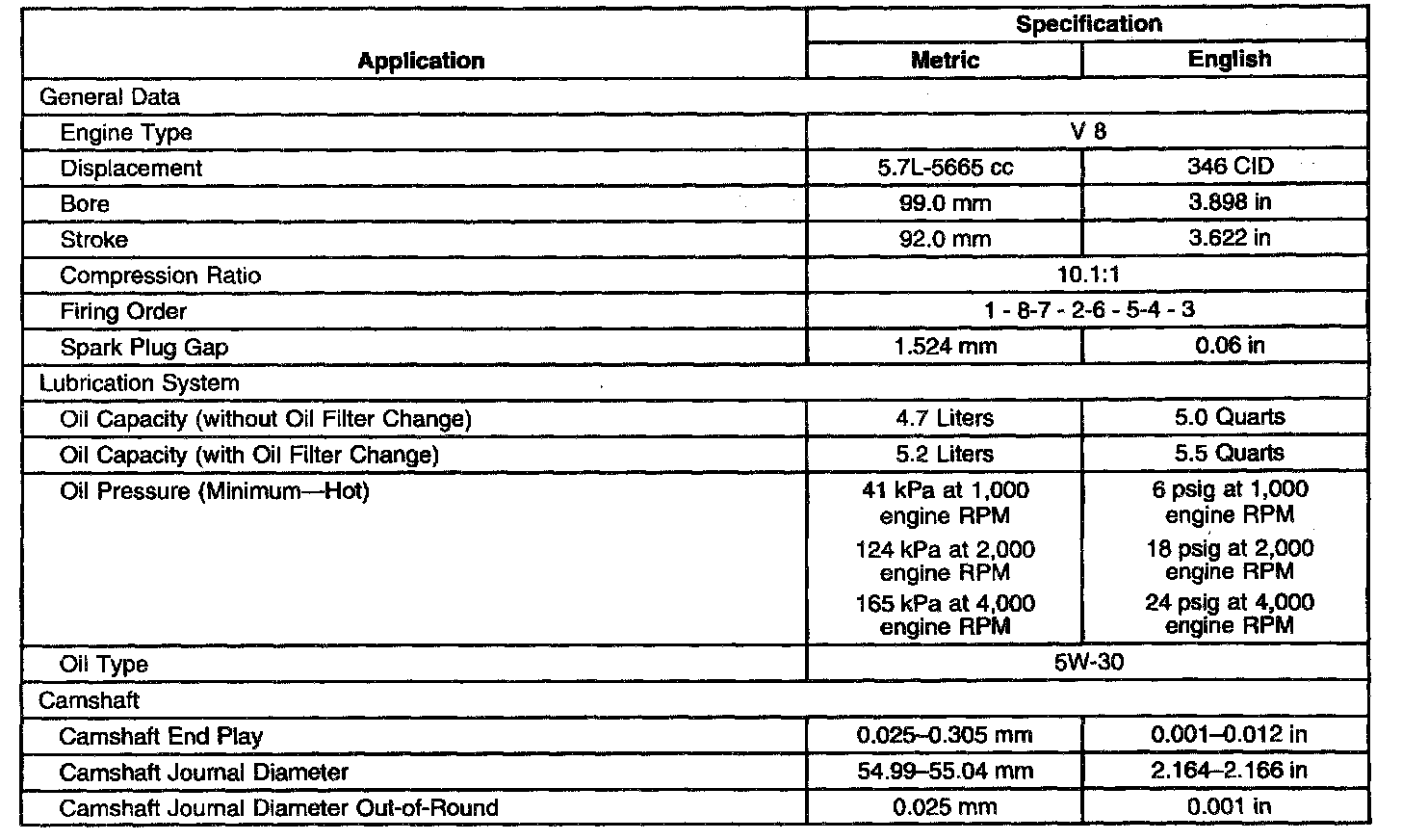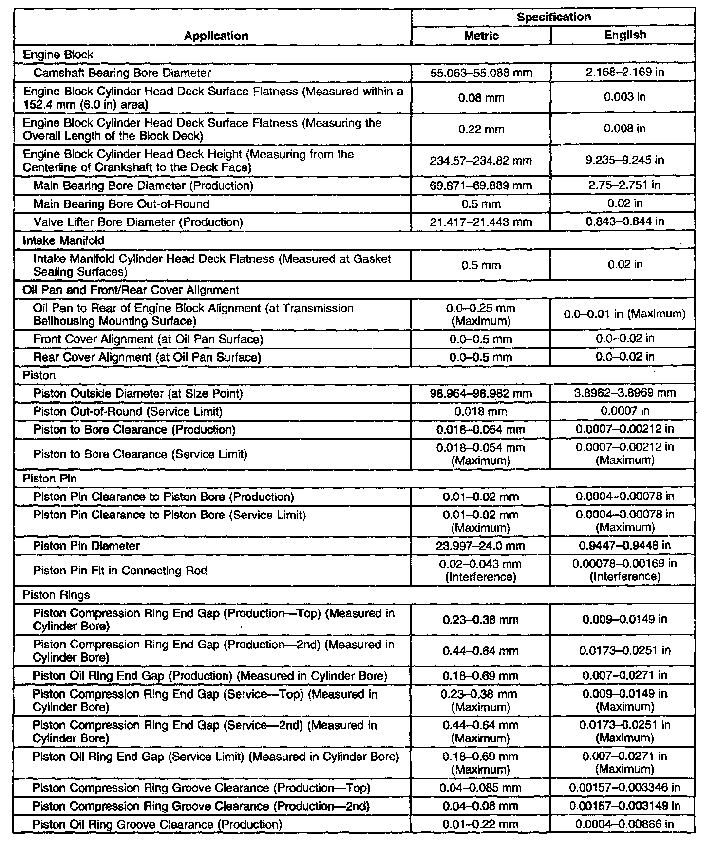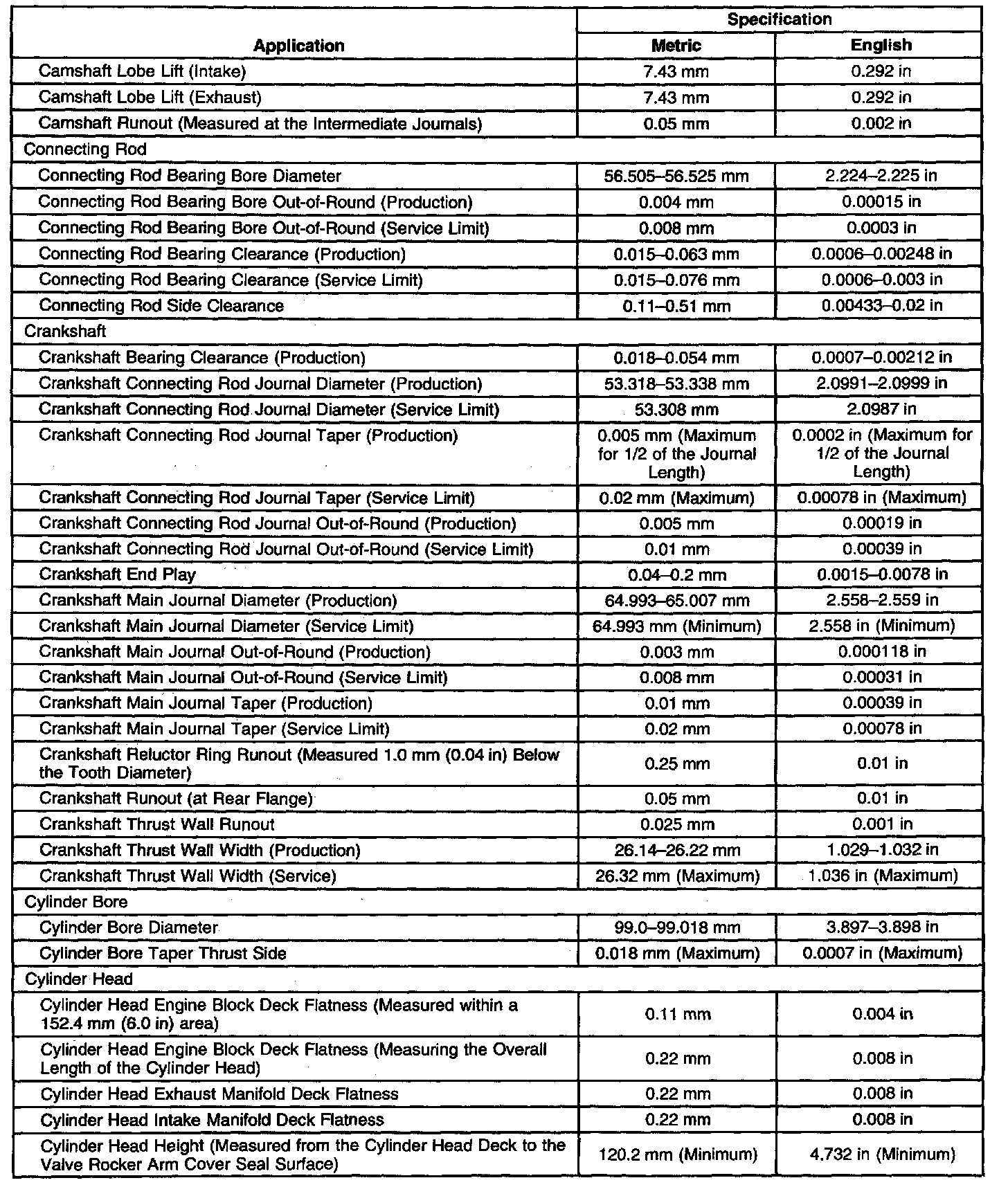 Engine Mechanical Specifications