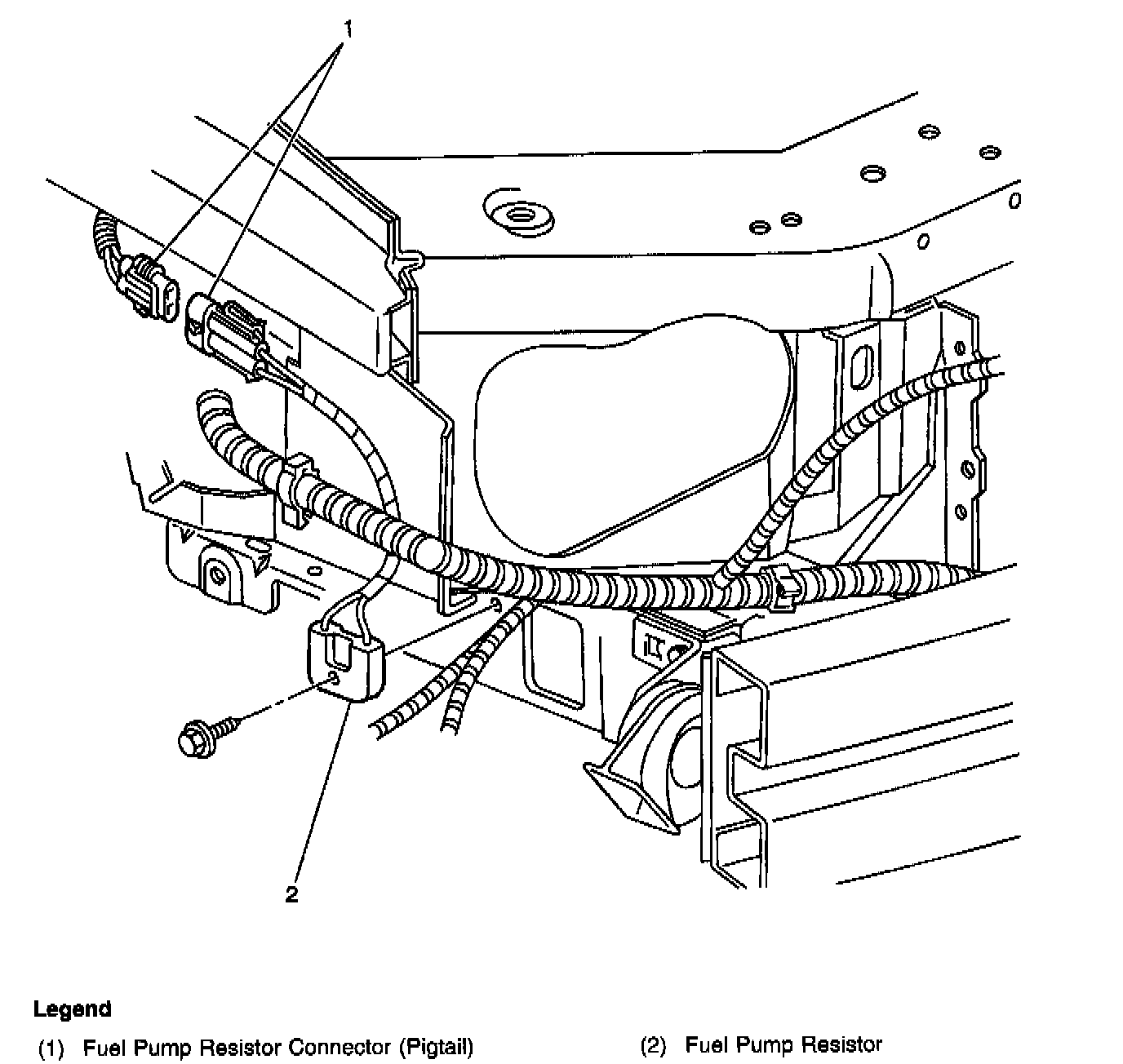 Mounted to the outside of the right front frame rail forward of the front wheel