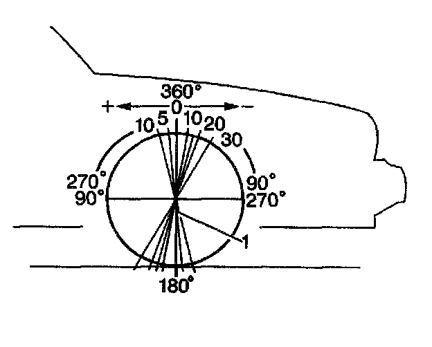 Caster is the tilting of the uppermost point of the steering axis, either forward or backward from the vertical, when viewed from the side of the vehicle. A backward tilt at the top is positive (+) and a forward tilt is negative (-). Caster influences the directional control of the steering, but caster does not affect tire wear. One wheel with more positive caster than the other wheel causes that wheel to pull toward the center of the vehicle. The vehicle will move or lead toward that side with the least amount of positive caster.