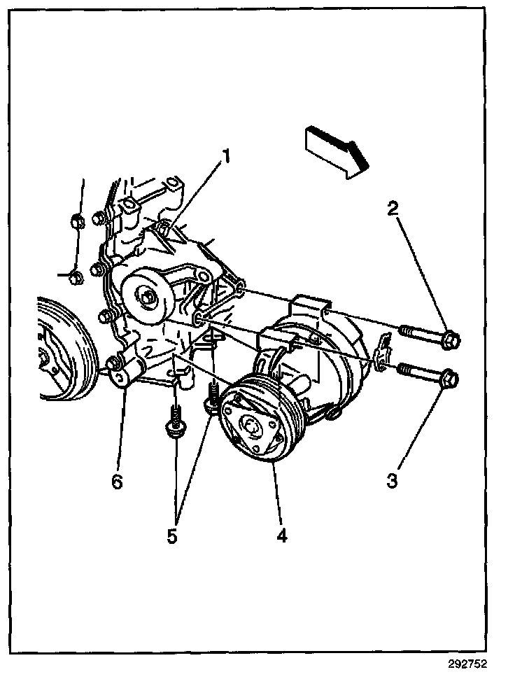 1. Install the compressor (4) with mounting bolts (1,2,3,5).
