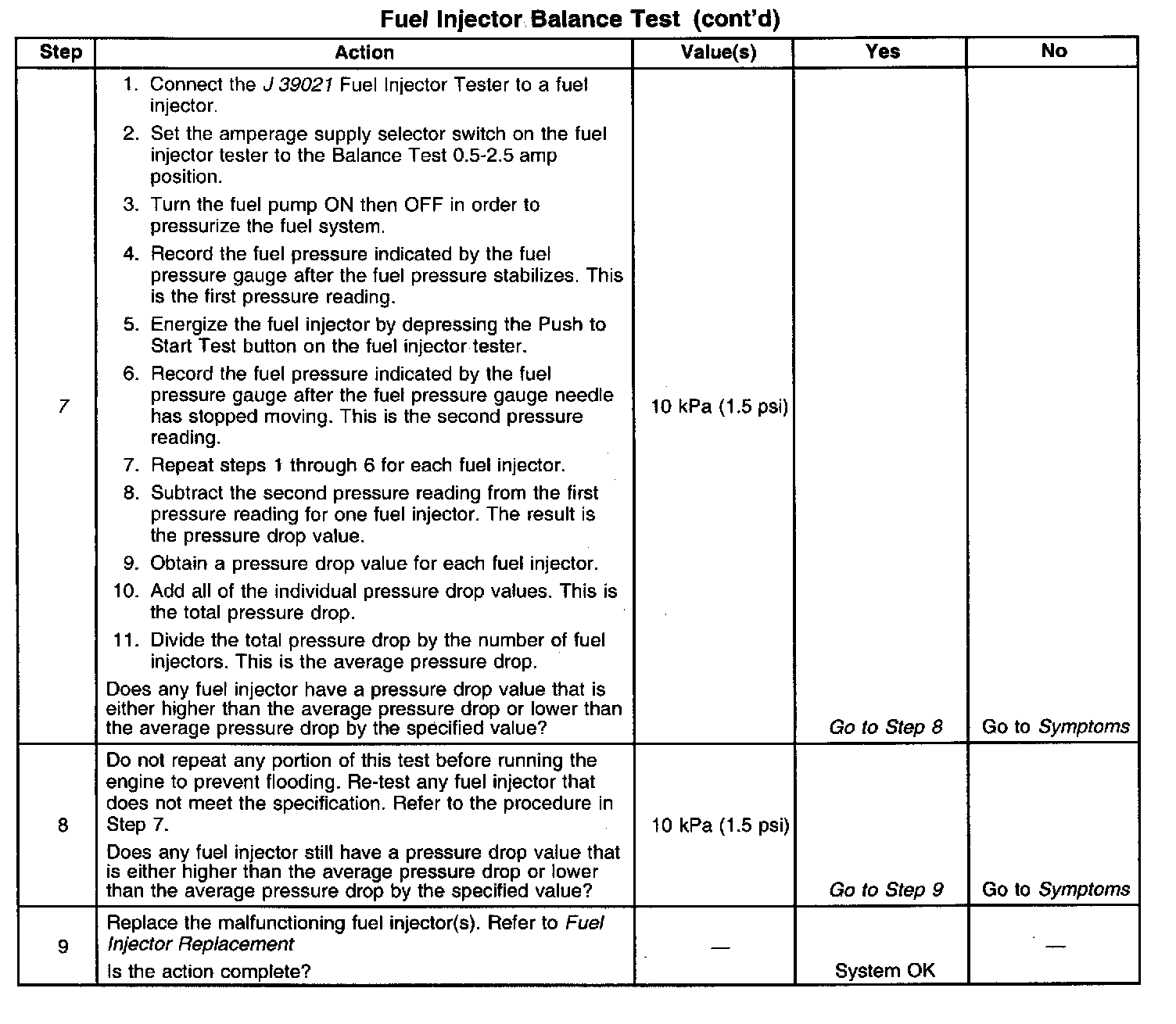 6. The fuel pressure should reach a steady value. If the fuel pressure does not reach a steady value, go to Fuel System Diagnosis.