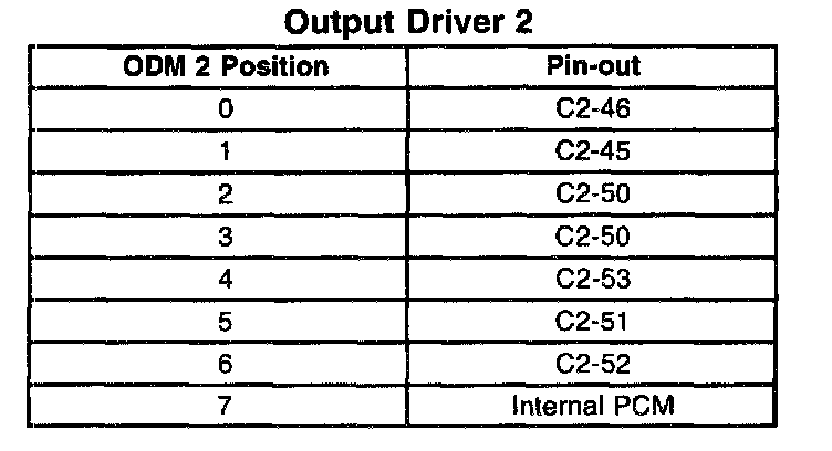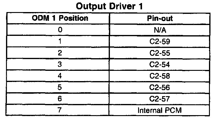 Drivers also have a fault line to indicate the presence of a current fault to the PCMs central processor. A scan tool displays the status of the driver fault lines as 0 = OK, 1 = Fault. In order to correctly read the Short or Open PCM Output parameters on the scan tool, the ODM positions read from left to right: 7, 6, 5, 4, 3, 2, 1, 0. The actual pin-out locations for the PCM Output parameters are shown on the tables.
