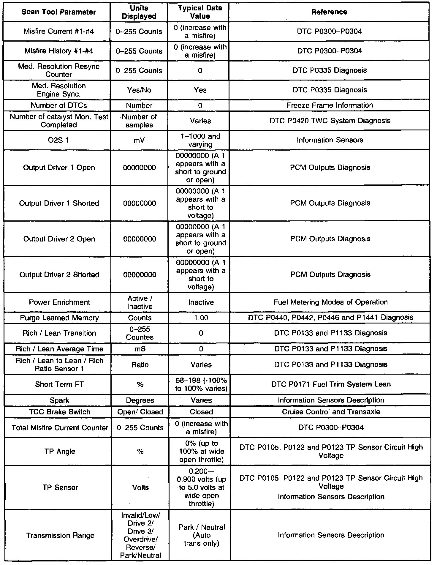 Typical Scan Tool Data Values (Part 3 Of 4):
