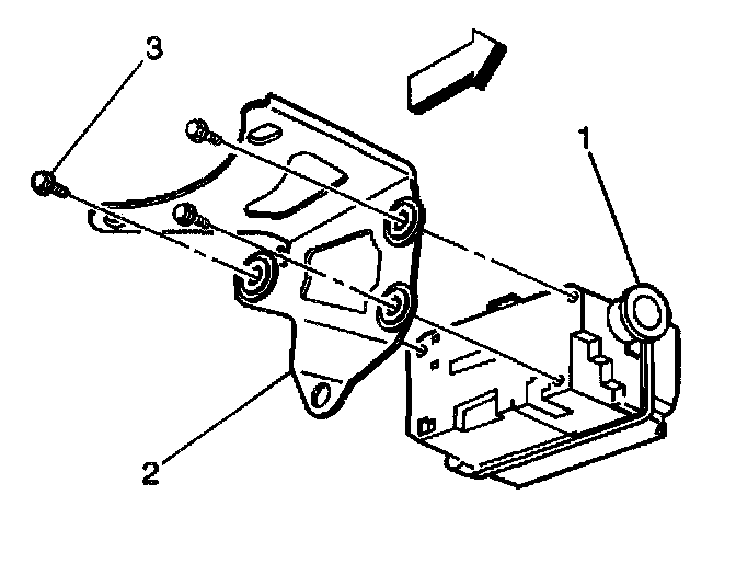 The cruise control module assembly is mounted on the right front strut tower. The module assembly has an electronic controller and an electric stepper motor in order to vary the throttle with each different cruise control mode. The module assembly is not serviceable.