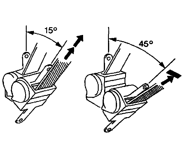4.3. Ensure that the seat belt webbing can be pulled from the retractor at an inclination of 15 degrees or less and cannot be pulled from the retractor at an inclination of 45 degrees or more.
