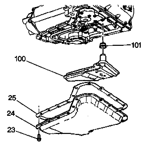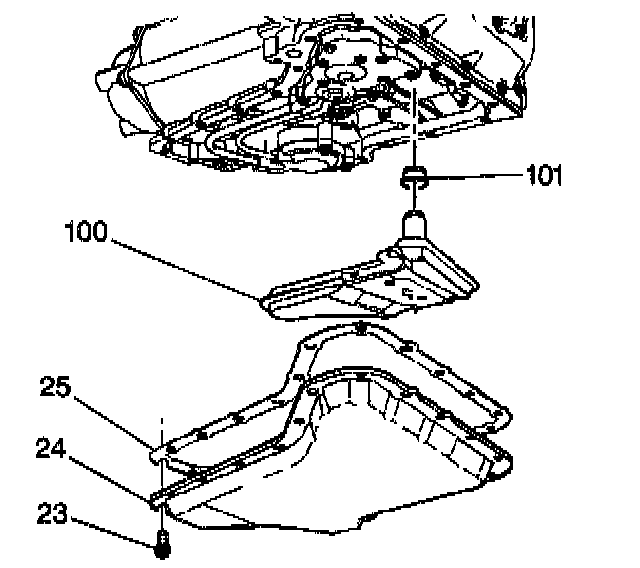 4. Install the gasket (25) and the oil pan (24). Refer to Oil Pan Replacement.