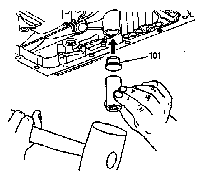1. If removed, install a new seal (101) using the appropriate sized socket and a mallet.