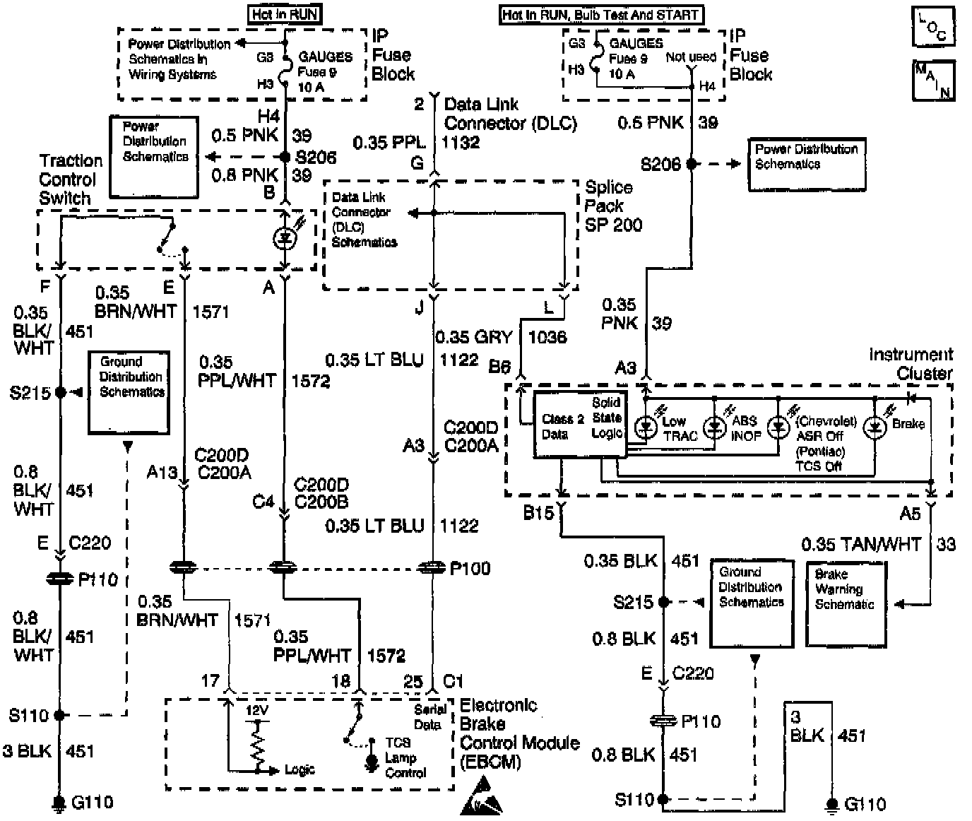 The ASR OFF Indicator is controlled by the EBCM by sending class 2 messages to the Instrument Panel Cluster (IPC). It is turned on when the EBCM sets a DTC that turns on the ASR OFF indicator. It is also turned on or off when the Accelerator Slip Regulation (ASR) Switch is pressed. The Electronic Brake Control Module (EBCM) supplies 12 volts to the ASR Switch, when the ASR switch is depressed the EBCM sees the voltage go low, and that the ASR switch state has changed. When the EBCM receives that a switch state has changed it turns on or off the ASR and sends a message to the IPC to turn on or off the ASR OFF indicator depending on its previous state.