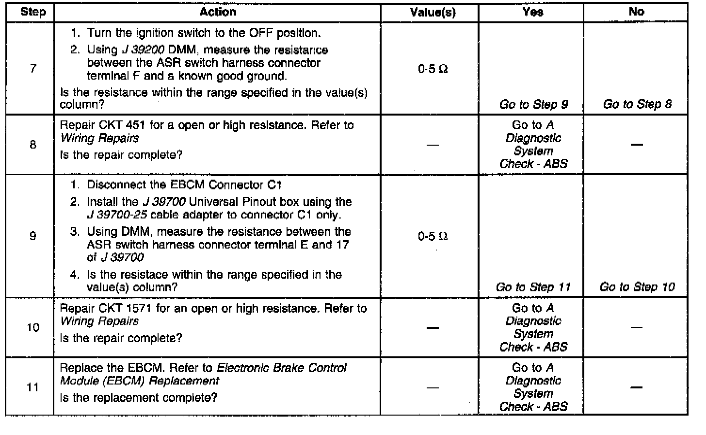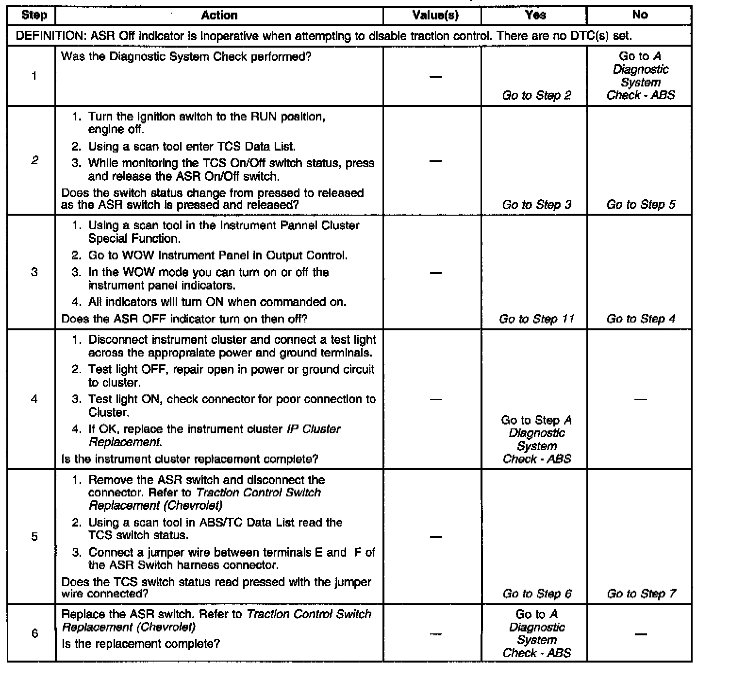 5. Checks if the EBCM or ASR Switch is at fault.