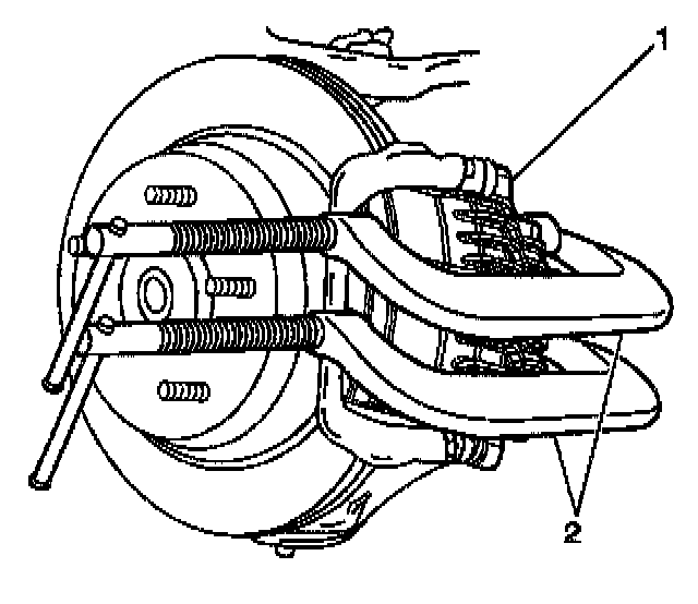 1. Install new inner and outer pads (2) into mounting plate (1).