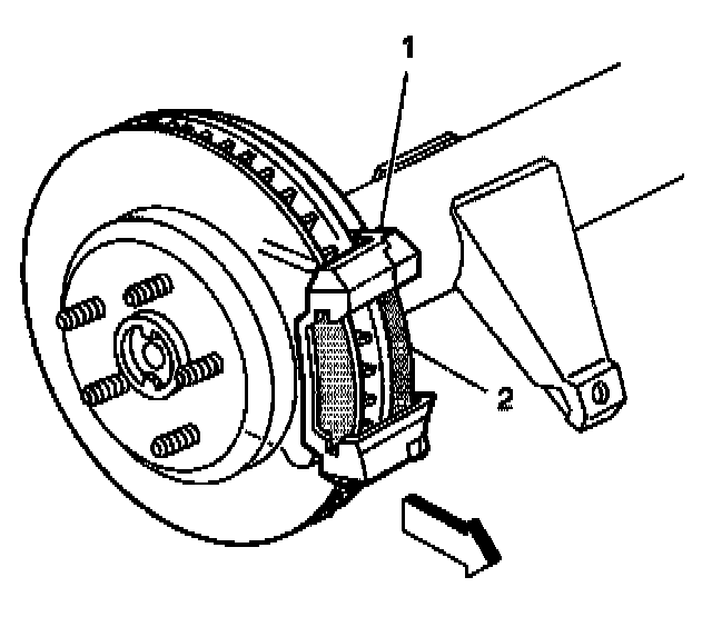 ^ Ensure that the wear sensor is on the leading edge of the inner pad during forward wheel rotation. If the wear sensor is not on the leading edge, use the other inner pad in the replacement kit.