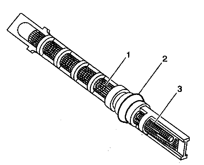 The plastic expansion (orifice) tube (2) is made of a mesh-screen (1) and orifice (3). The expansion (orifice) tube is located in the evaporator inlet pipe at the orifice connection. The tube restricts the high pressure liquid refrigerant in the liquid line. This restriction meters the refrigerant flow to the evaporator as a low pressure liquid. The expansion tube and orifice have filter screens which protect from contamination on both the inlet and outlet sides of the tube. When the engine is OFF the refrigerant in the system flows from the high pressure side of the system to the low pressure side until the pressure is equalized. This may be detected as a hissing sound for 30-60 seconds and is a normal condition.