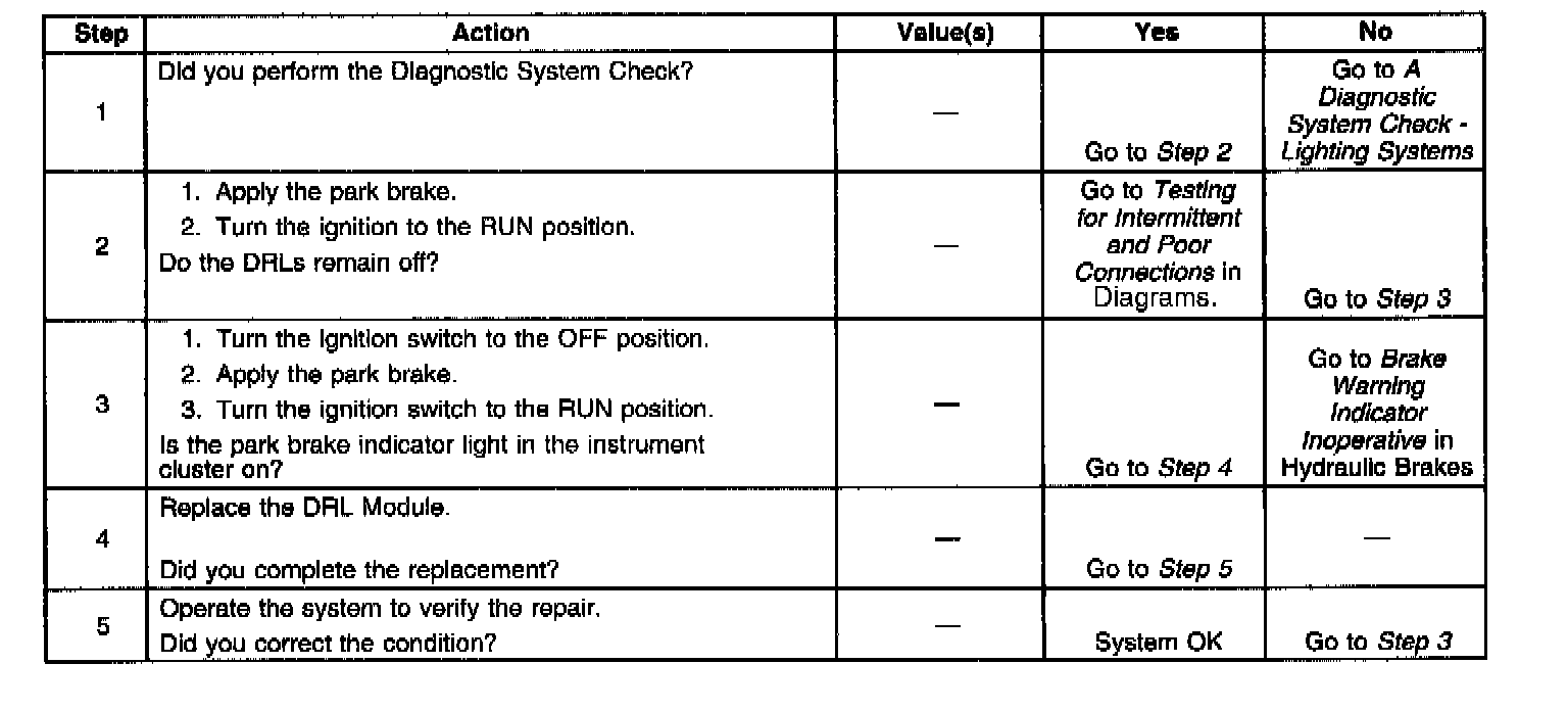 Headlamps, ParkLPS, Daytime Running LPS (DRL) On With Park Brake Applied: