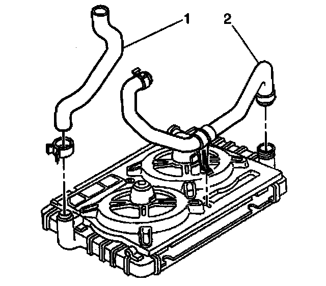 2. Install the outlet hose (2) to the radiator.