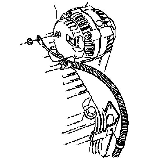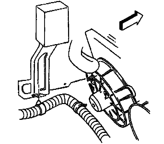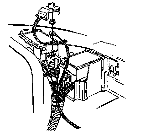 9. Install the positive cable rosebud clip to the engine lift bracket.