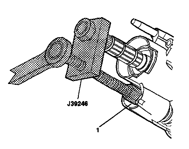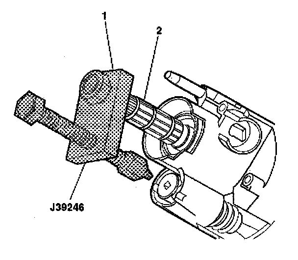 5. Seat the counterbore of J39246 over the steering shaft assembly (2).