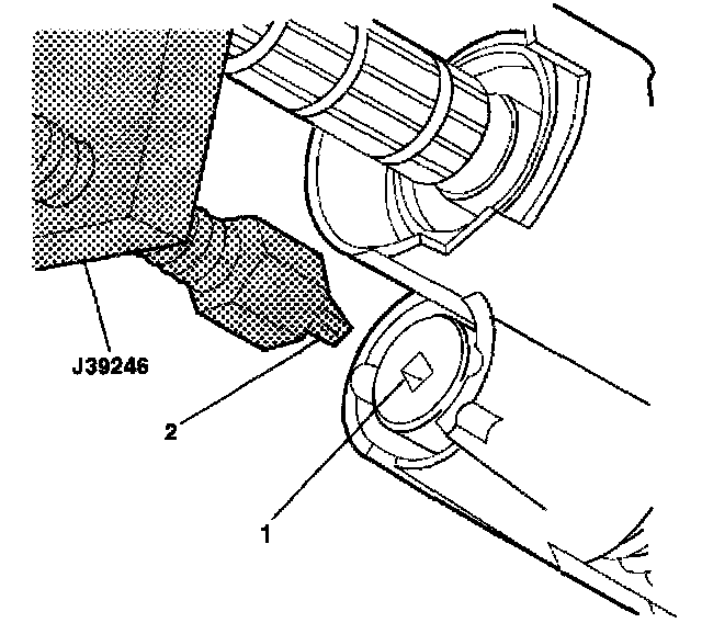 8. Insert the square end (2) of J39246 into the spring retainer (1) and seat.