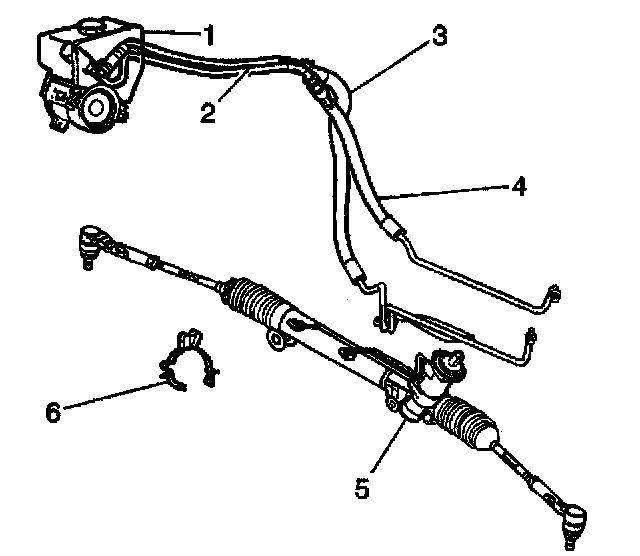 1. Install the power steering return hose (3) to the power steering gear (5).