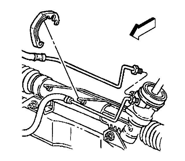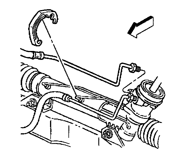 6. Remove the power steering pressure line from the clamps on the power steering gear.