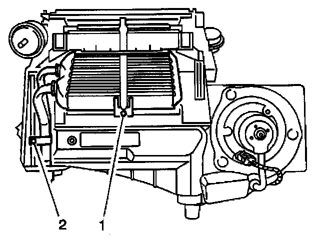 2. Install the heater core upper seal (2) to the HVAC lower case.