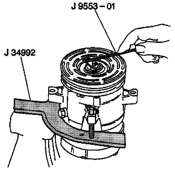 8.5. Remove the J 23128-A and the J 34614 from the compressor.