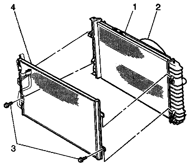 6. Remove the condenser to radiator bolts (3).