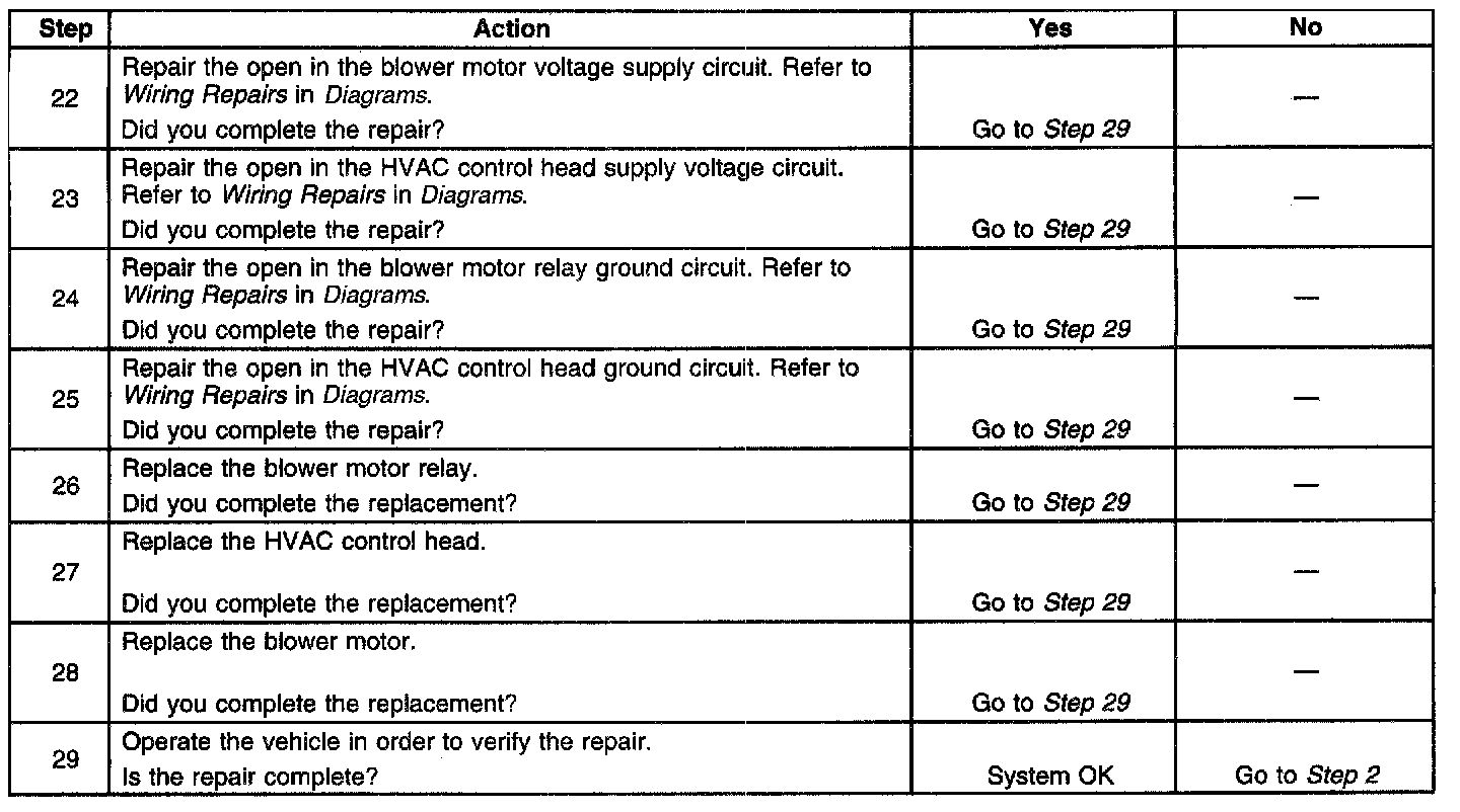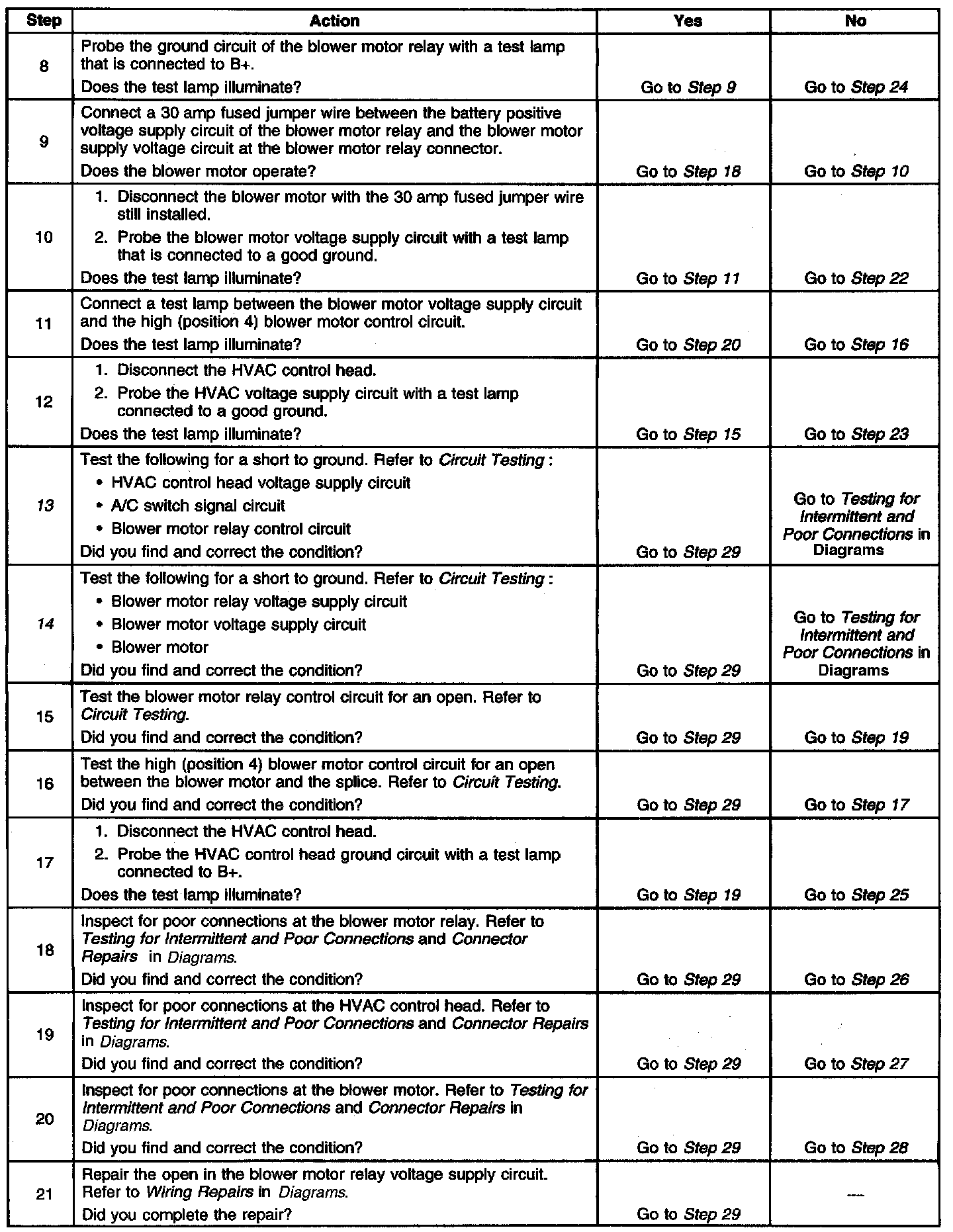 The number(s) below refer to the step number(s) on the diagnostic table.