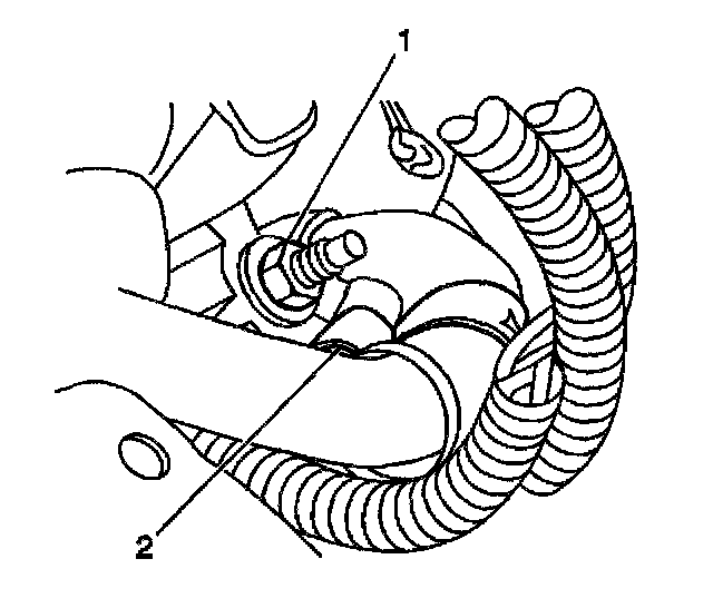 5. Install the power steering hose retaining bracket (2) and the retaining nut (1).