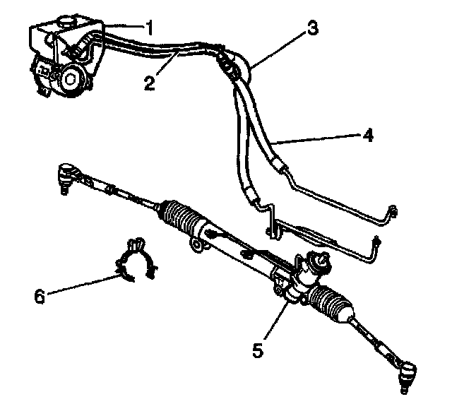 5. Remove the power steering return hose (3) from the retainer (6).