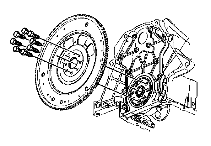 3. Loosen the 8 engine flywheel bolts.