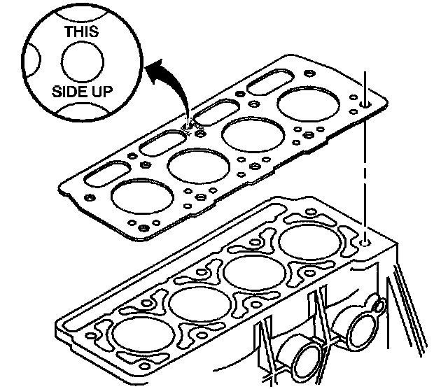 Important: Install the cylinder head gasket with the words THIS SIDE UP showing. Do not use sealer on the gasket.
