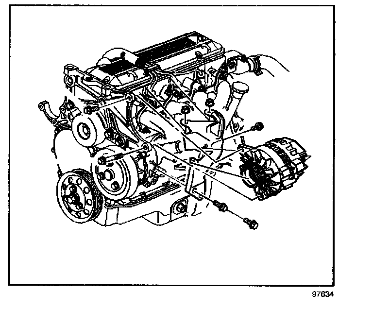 ^ Tighten the generator bolt (lower) to 50 N.m (37 lb ft).