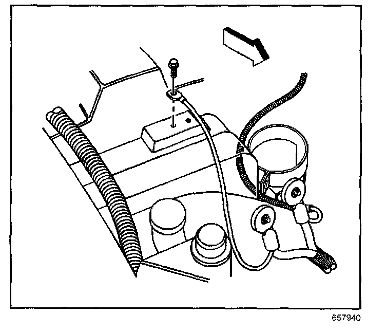 4. Remove the ground lead bolt (1) at the engine block.