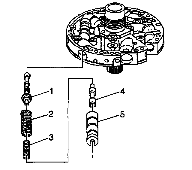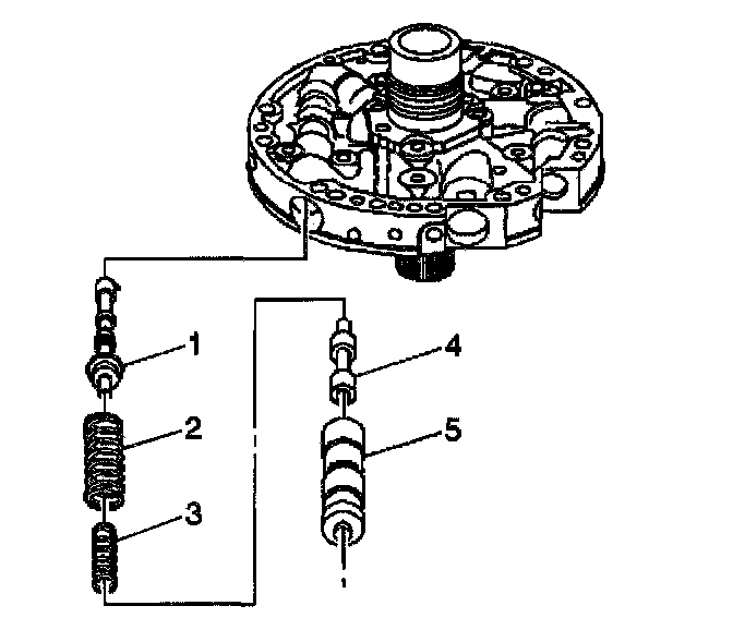 6. Remove the pressure regulator isolator spring (3) and the pressure regulator valve spring (2).